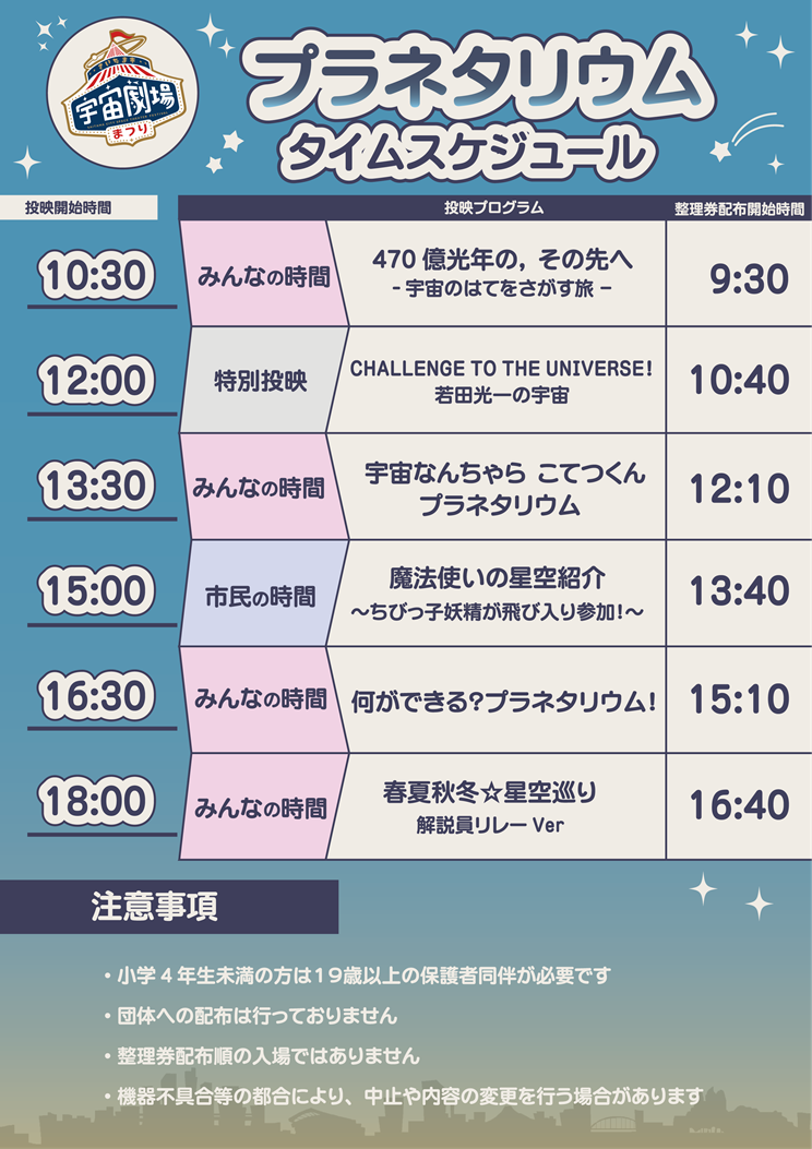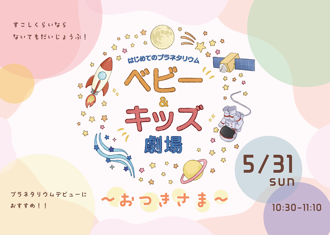 | 4.25(土)18:45- | 宇宙劇場5階 | 天体観望会「金星と木星と月(月齢7.5)」 ※お申し込みはこちら |